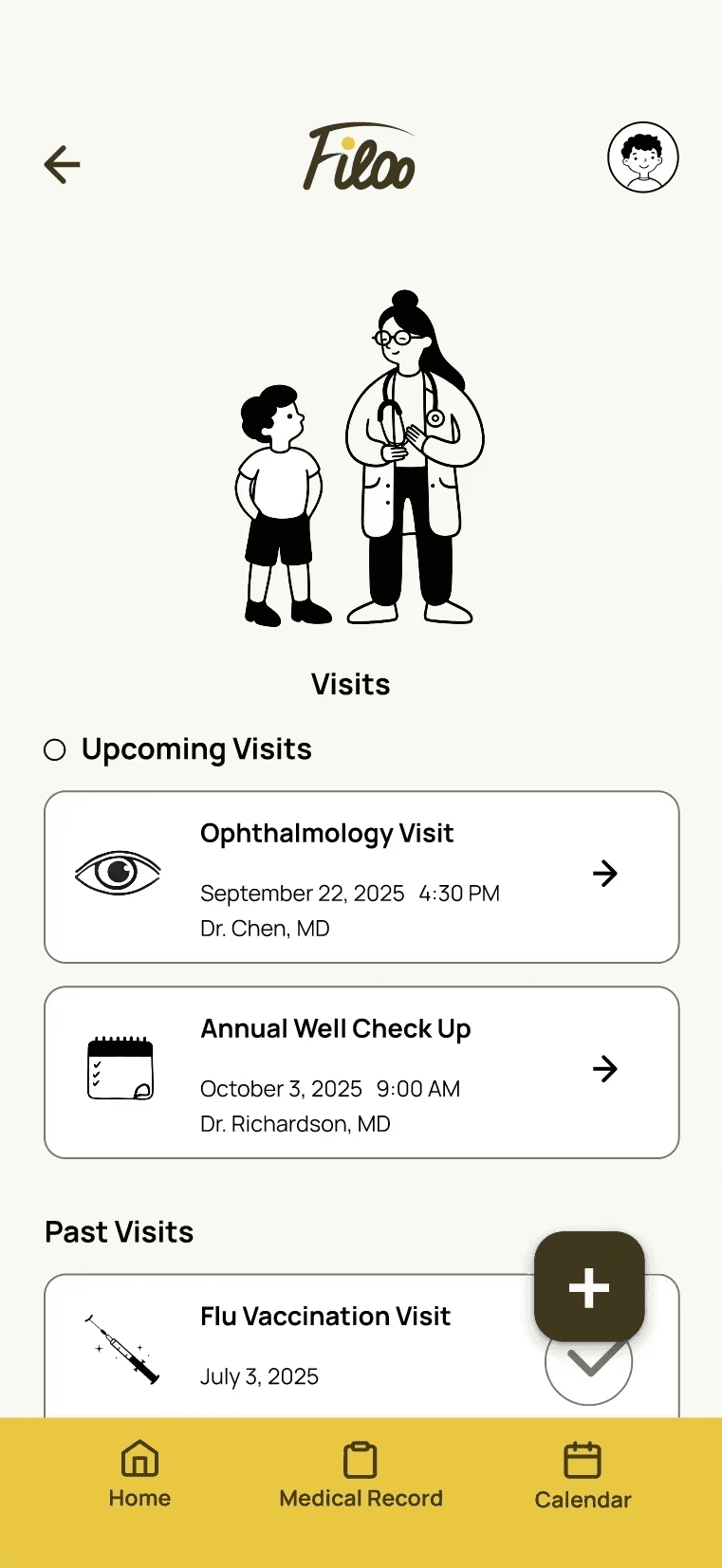 Calendar integration would have pulled Filoo toward being a general scheduling app. That's not the product. I kept the focus on pediatric health specifically and left integration as a next step.