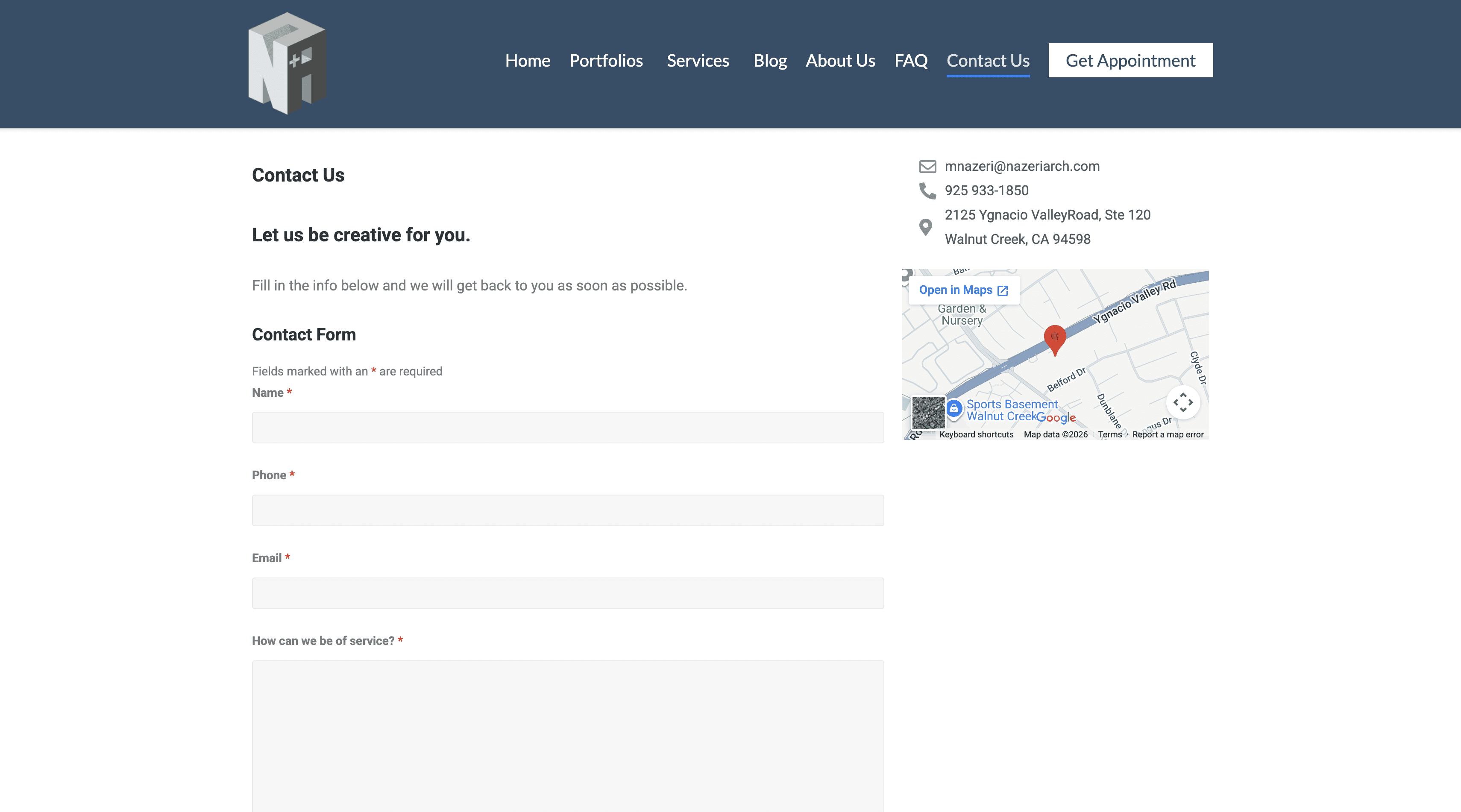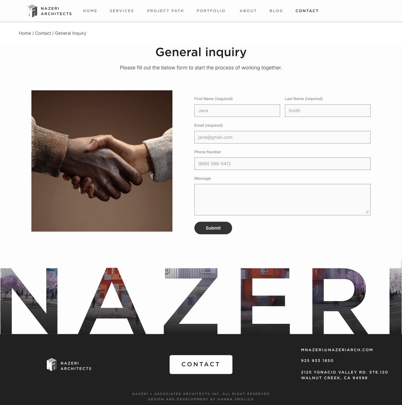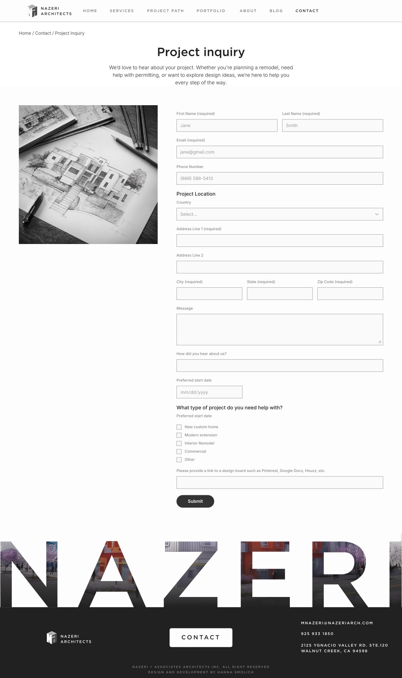 Redesign the Nazeri Architects website to help two different types of clients — homeowners and business owners — understand the firm's process, evaluate their fit, and feel confident enough to reach out, without being pushed to contact before they're ready.